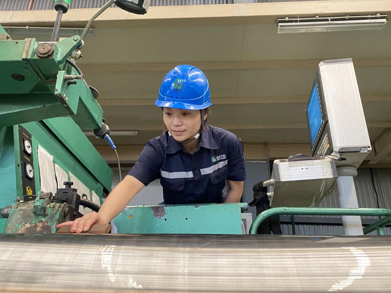 同事劉仕美說:“我還清晰的記得她剛當(dāng)上主操時,公司接到了新規(guī)格的產(chǎn)品訂單,軋的是高品質(zhì)鋁板帶,對粗糙度要求很高,而且軋輥的表面不能有一點刀花,也不能有砂輪劃傷,相當(dāng)于要成品輥的表面和開坯輥的粗糙度,砂輪不同規(guī)格一片一片的試,砂輪硬了,磨起振紋消不掉,砂輪軟了粗糙度又低,所以要先選定一塊砂輪后又每一個參數(shù)一點一點的調(diào)試觀察變化,每一點變化輥面都會呈現(xiàn)不一樣表面,磨好了就拿電筒慢慢一點一點的檢查,小小的一點缺陷都不能放過,因此很多人都說磨工都有一雙很毒的眼,一眼就能看清楚一般人看不到的東西。她刻苦專研,當(dāng)別人在吃午飯時,她仍堅守在自己的崗位上,在磨床設(shè)備上找方法,當(dāng)別人都下班了,她繼續(xù)研究設(shè)備找方法。那時的她還在哺乳期,為了盡快尋找出解決方法,她放棄了哺乳時間,通過四天的不斷摸索和試驗,她終于用60號砂輪磨出來了符合要求的軋輥,最后通過了質(zhì)檢員的驗收。軋機也順利生產(chǎn)出合格的鋁板帶發(fā)給了客服。經(jīng)過一次次的磨煉和她這幾年不斷地努力學(xué)習(xí),工作中遇到難題時她都能迎刃而解?!?