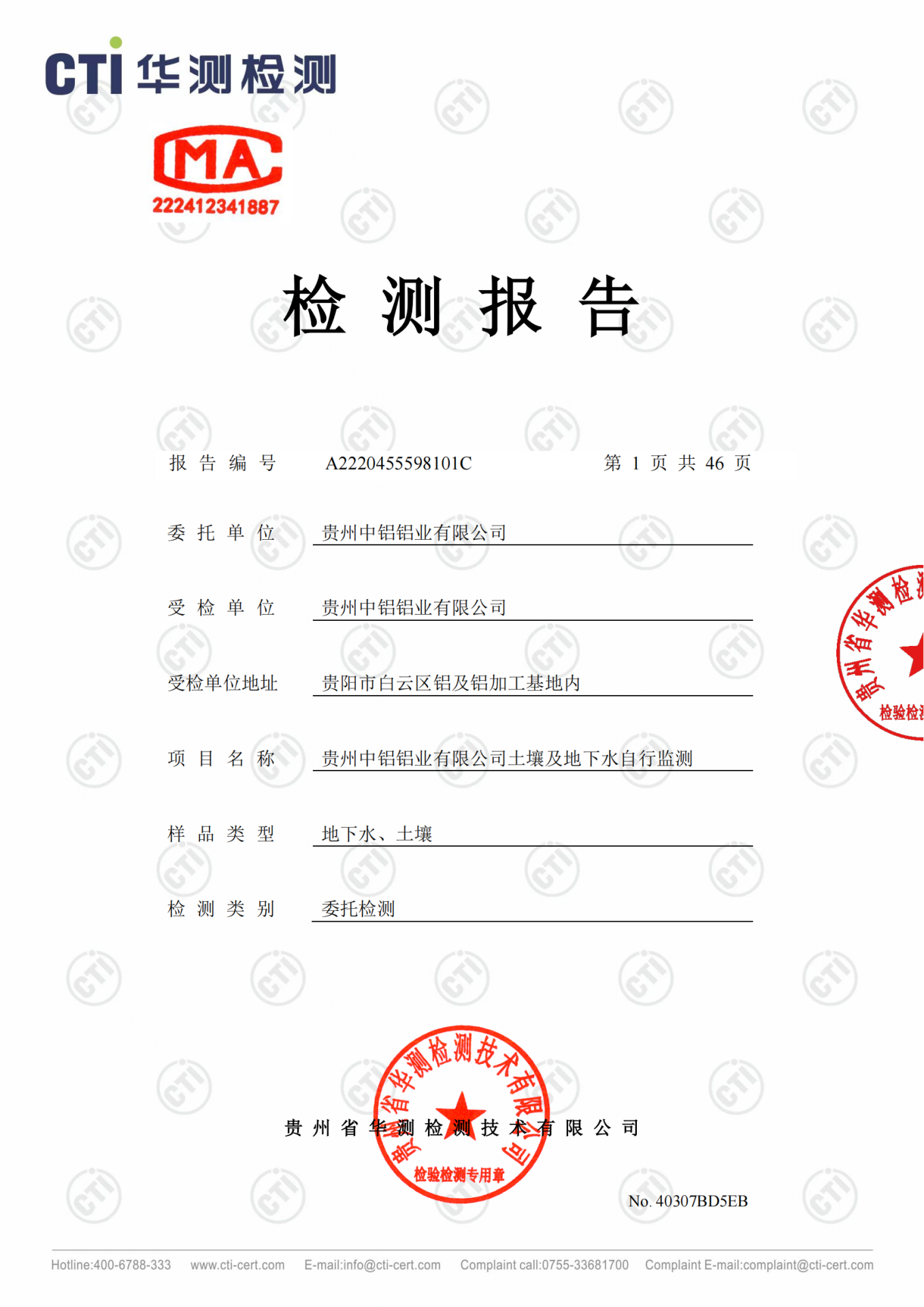 貴州中鋁鋁業(yè)有限公司2022年度土壤、地下水自行監(jiān)測報告